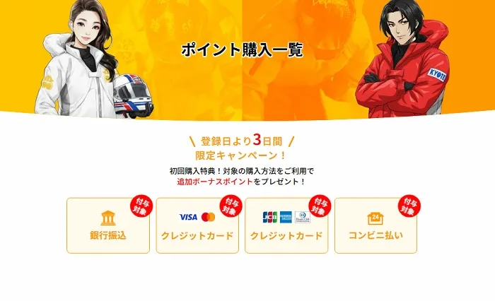 登録日3日間はポイント購入で追加ボーナスポイントをゲット可能!