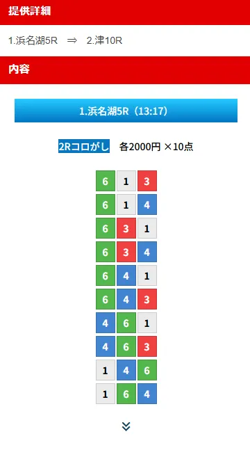 | プラチナムプラン | コロがし2レース | 6~10点 | 140,000円 | +1,100,000円~ | 先着15名 |