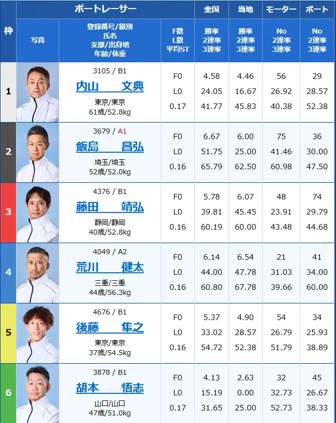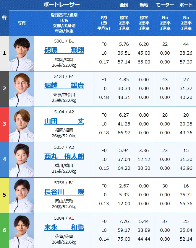 6号艇仲谷選手に関しても、連対率やらを見ると確かに入ってもおかしくはないのかなといった所。