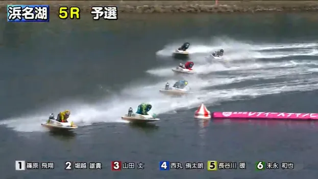 注目の第1ターンマーク―飛び出したのは4号艇・荒川健太!
