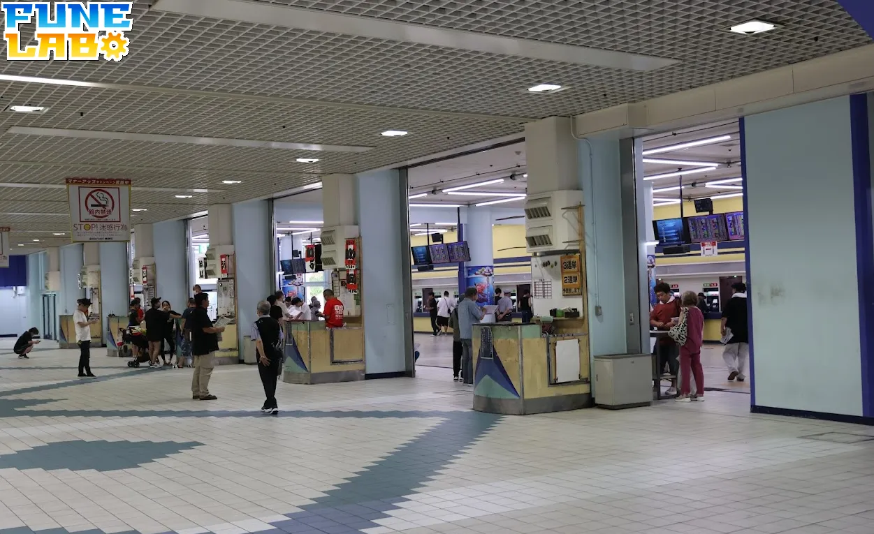 駅からの道順は比較的シンプルで、出口を出てまっすぐ進むと右側に競艇場の入場ゲートが見えるため、迷わず辿り着きやすい立地です。