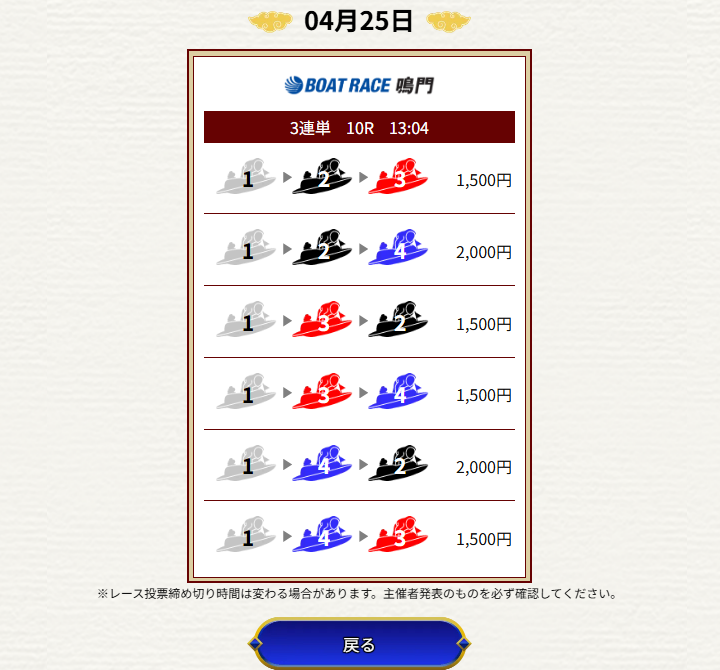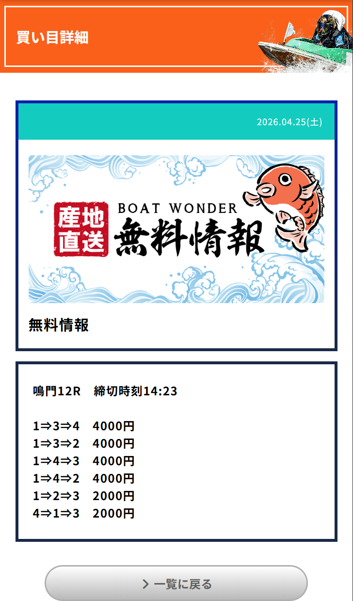 鳴門競艇で今日4月25日(土)行われる競艇レースの無料予想を掲載しております。