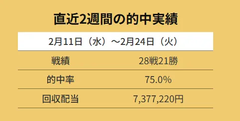 単なる「的中しました!」という実績アピールではなく、戦績や的中率、期間トータルの回収配当までしっかり掲載。