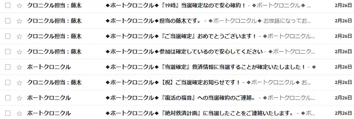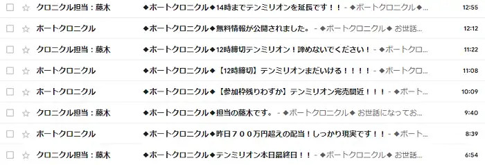 ボートクロニクルからは1日に平均で7〜8通程度のメールが届きます。