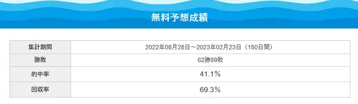 無料予想は的中率、回収率の両面で信用度が低く、的中してもほぼトリガミの予想も見られる。