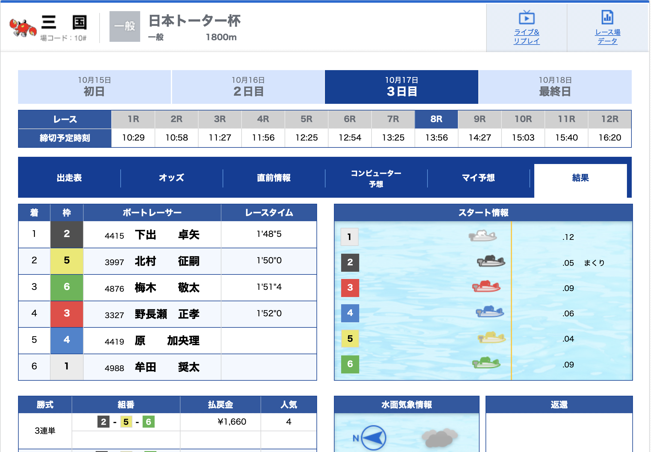 A1選手2人(2号艇・6号艇)にあまり注目していないのは少し気になりますが、レース結果は一体どうなるのでしょうか?