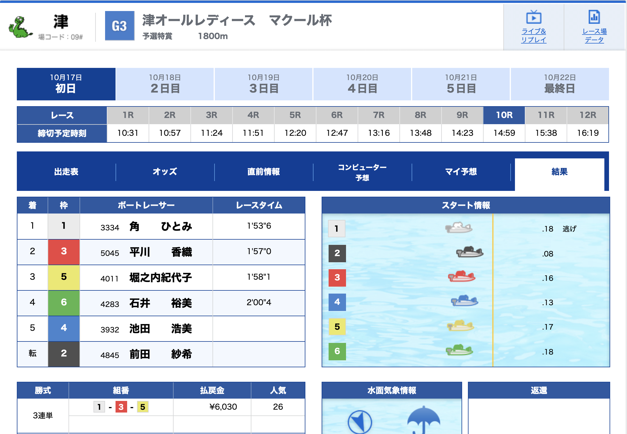 内枠3選手を予想もありつつ、5号艇のA1の堀之内選手を入れた予想をしており、10点という買い目を生かした「DREAM BOAT(ドリームボート)」の予想になっています。