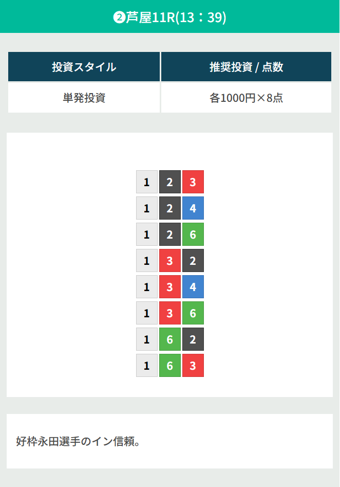 5勝1敗で的中率は83.3%、回収率は347.3%となっています。