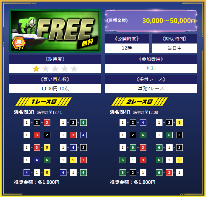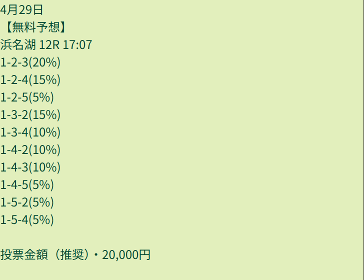 浜名湖競艇で今日4月29日(水)行われる競艇レースの無料予想を掲載しております。