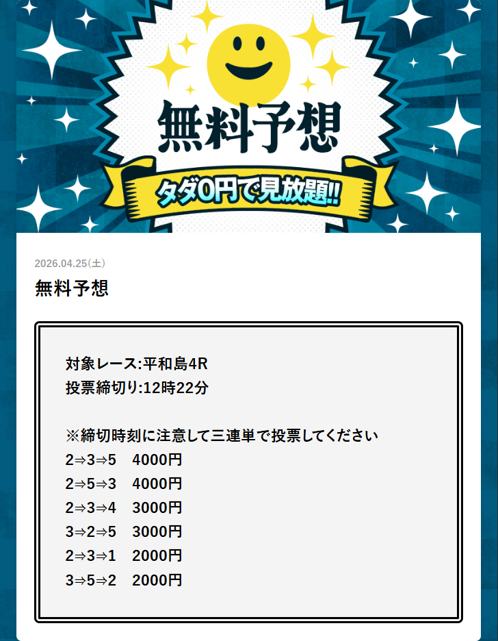 平和島競艇で今日4月25日(土)行われる競艇レースの無料予想を掲載しております。