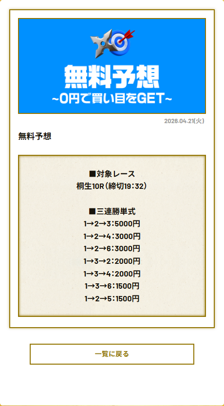 競艇予想サイト独自の桐生競艇の無料予想も公開しています。