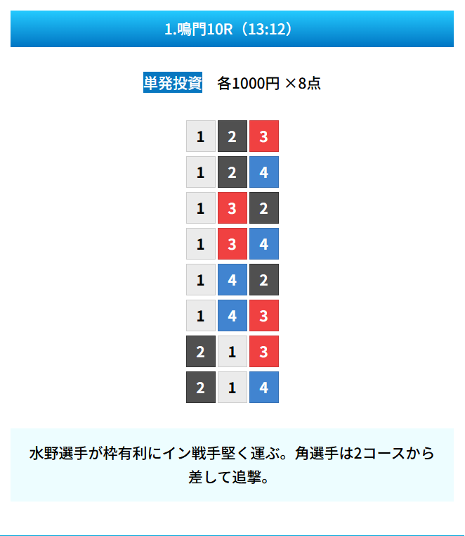 以前は「イン絶対」と言われる鳴門でしたが、近年の施設リニューアルによって「まくり」の勝率が上がりました。
