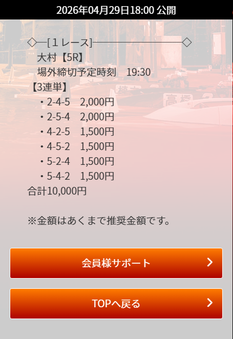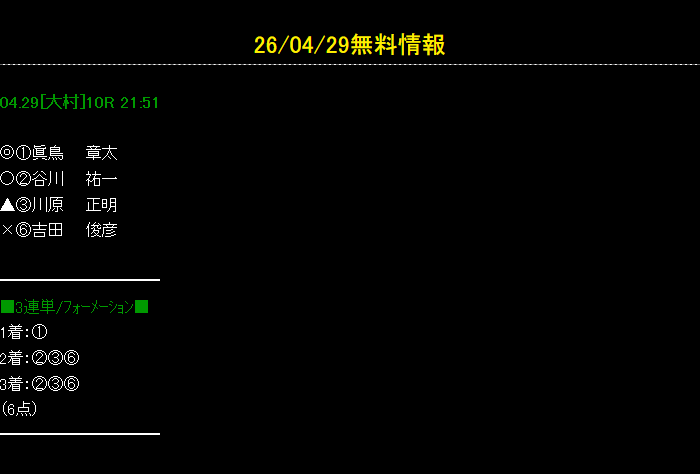 大村競艇で今日4月29日(水)行われる競艇レースの無料予想を掲載しております。