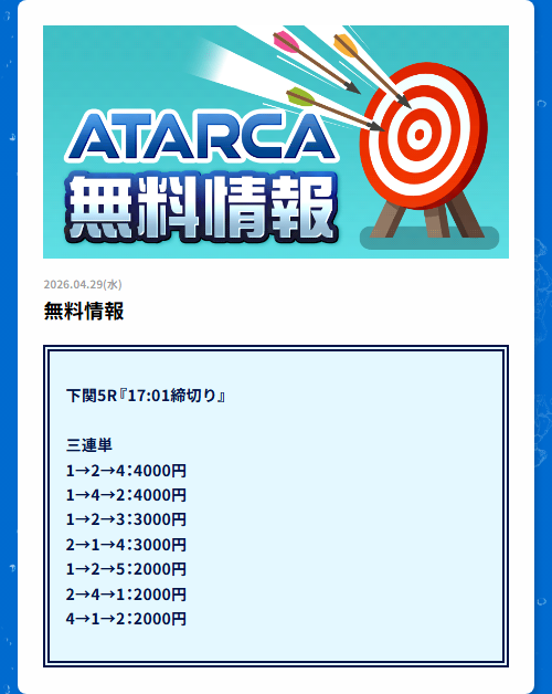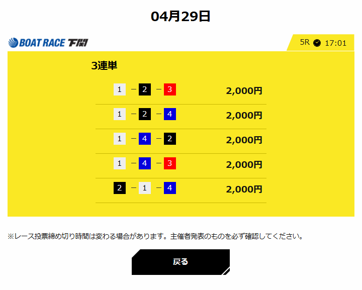 下関競艇で今日4月29日(水)行われる競艇レースの無料予想を掲載しております。